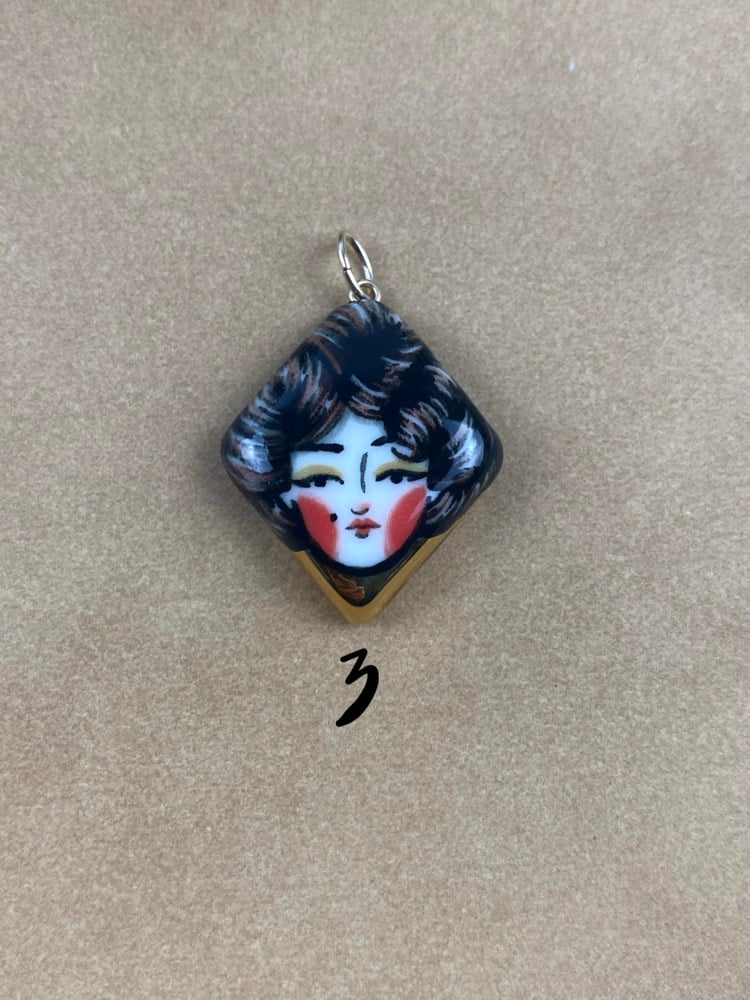 Hand made porcelain charm/pendant - hand painted with added 24K gold lustre. Each charm measures roughly 2.5cm in length by 2.5cm wide and comes with a 6.5mm oval 14K gold filled jump ring.