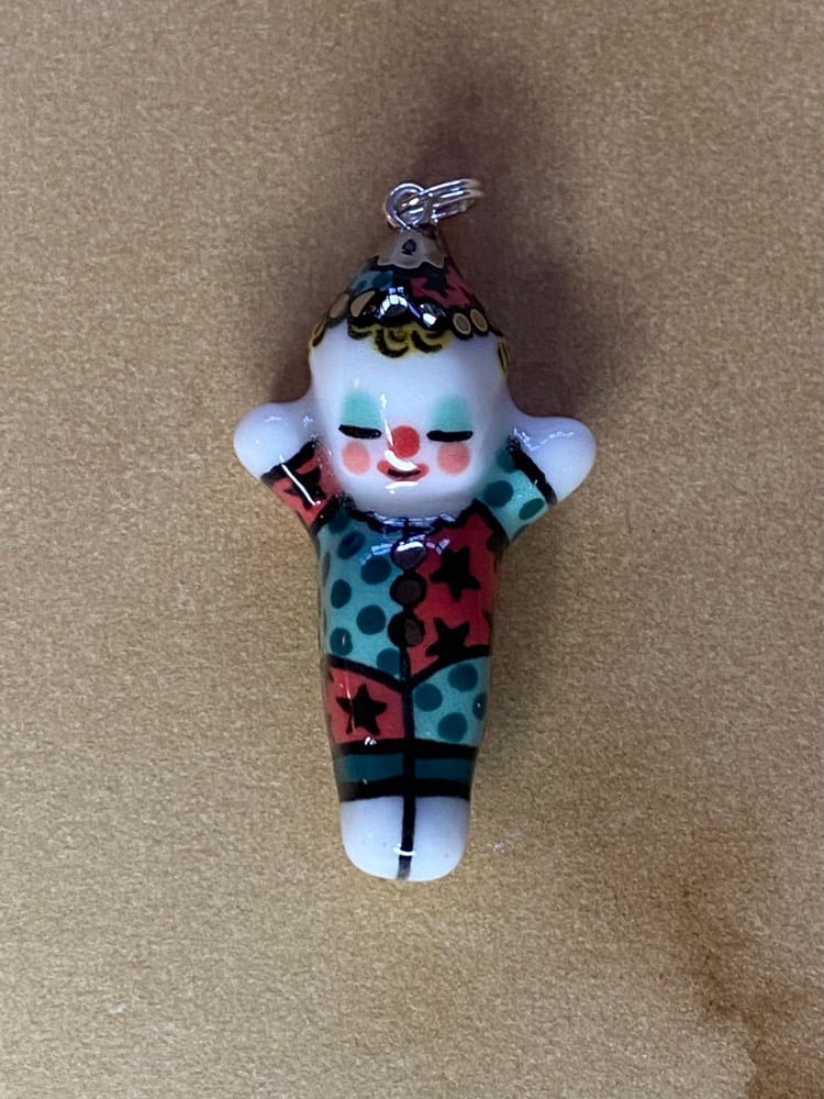 Please take care not to hit the porcelain pieces on hard surfaces and always remove before bathing/showering/swimming. Avoid spraying fragrances/applying lotions directly onto charm.