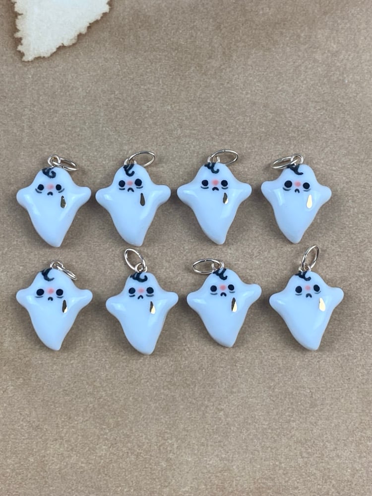 Hand made porcelain charm/pendant - hand painted with added 24K gold lustre. Each charm measures roughly 1.8cm in length by 1.5cm wide and comes with a 6.5mm oval 14K gold filled jump ring.
