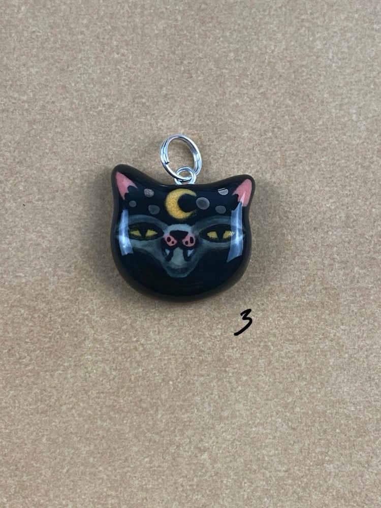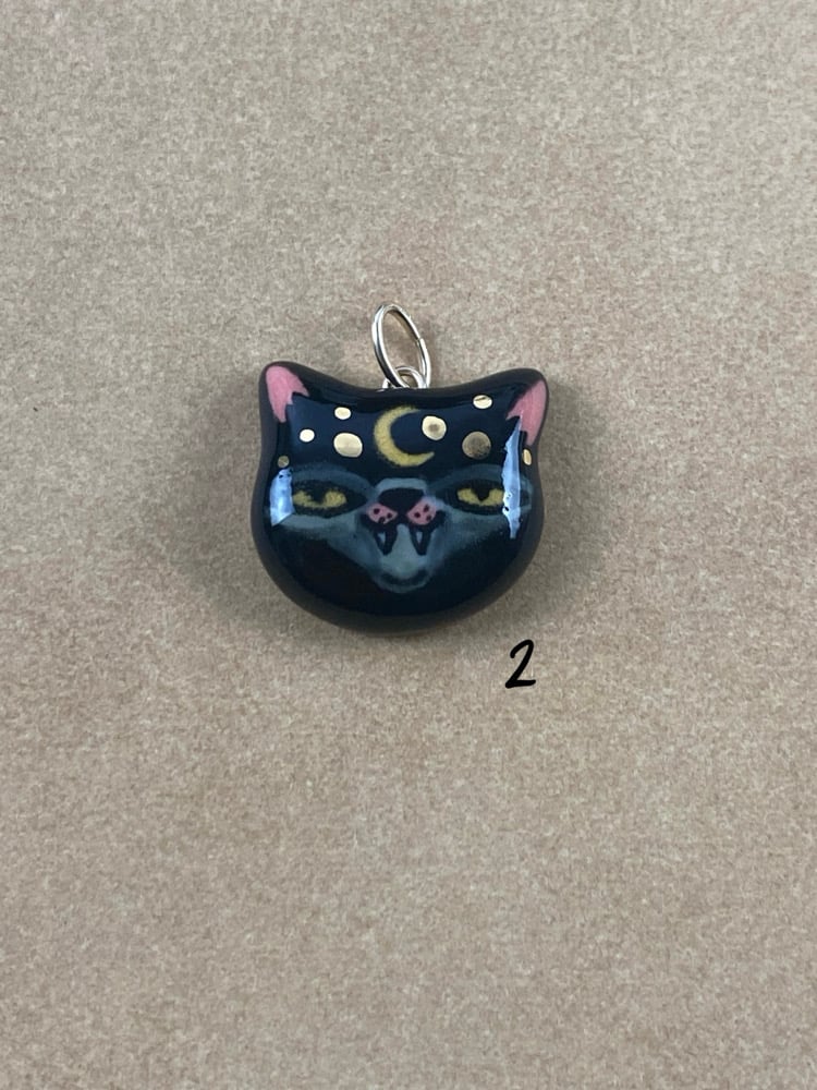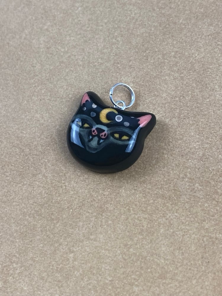 Hand made porcelain charm/pendant - hand painted with added 24K gold lustre or platinum lustre. Each charm measures roughly 1.5cm in length by 1.7cm wide and comes with a 6.5mm oval 14K gold filled jump ring or a 6mm sterling silver split ring.