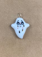 Hand made porcelain charm/pendant - hand painted with added 24K gold lustre. This charm measures roughly 2.6cm in length by 2.3cm wide and comes with a 6.5mm oval 14K gold filled jump ring.