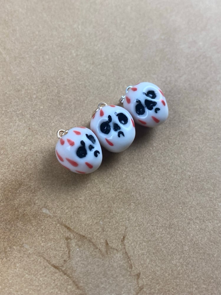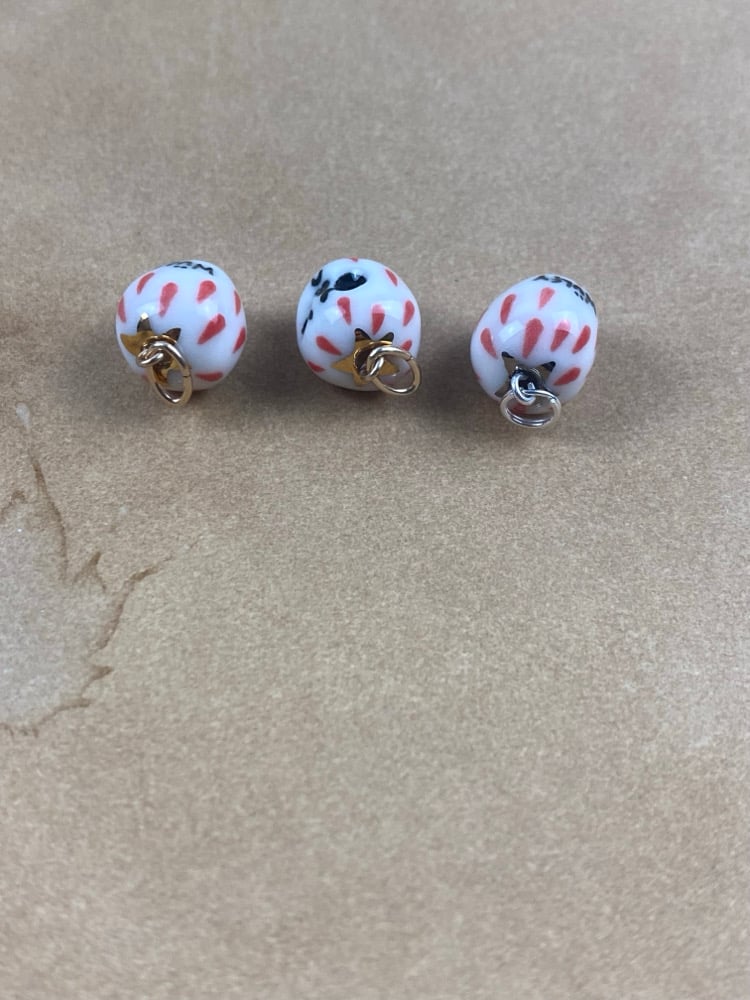 Hand made porcelain charm/pendant - hand painted with added 24K gold lustre or platinum lustre. Each charm measures roughly 1cm in length by 1cm wide and comes with a 6.5mm oval 14K gold filled jump ring or a 5mm sterling silver split ring.
