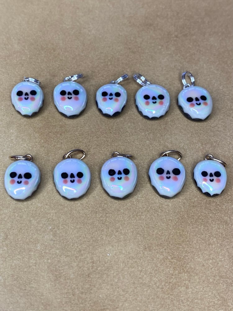 Tiny Happy Skulls - mother of pearl lustre (gold and silver jump ring options)